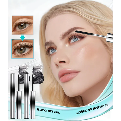 Vandeniui atsparus netepantis 3D tušas sukuria ilgai išliekantį, natūralų blakstienų pakėlimo efektą be gumulėlių ar išsiliejimo